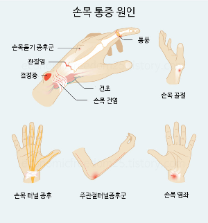 손목 통증의 원인 손목 통증의 일반적인 원인은 다음과 같습니다.