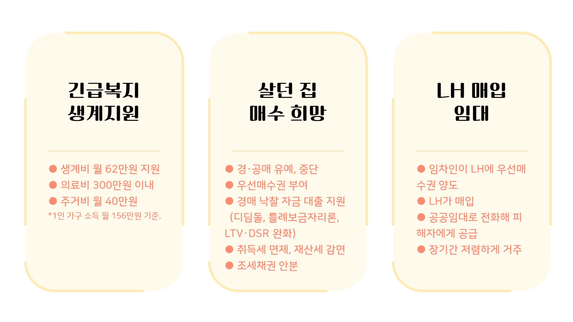 '전세사기 피해자 지원 및 주거 안정에 관한 특별법은 경·공매가 진행 중인 피해 임차인에게 단계별로 3가지 선택권을 부여합니다.