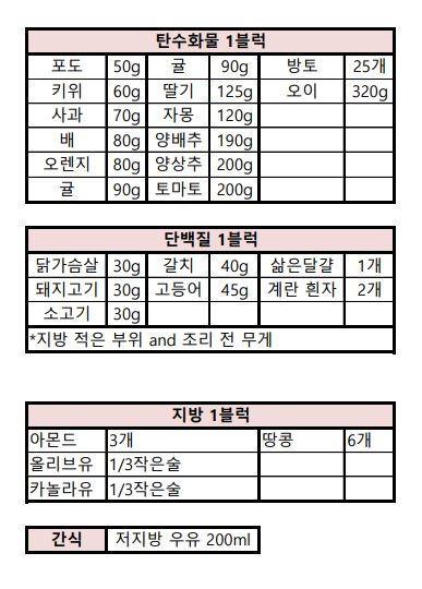 존다이어트 탄, 단, 지 1블럭 자료입니다. 탄수화물은 권장 탄수화물을 드시고 지방 적은 단백질과 불포화 지방을 챙겨 드시면 됩니다.