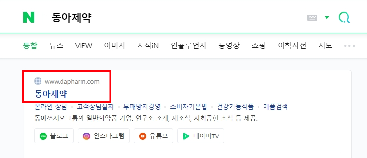1. 동아제약을 검색하여 홈페이지로 접속합니다.