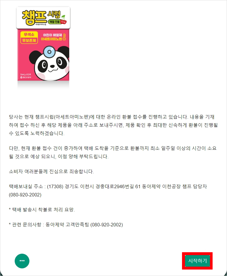 챔프 해열제 회수 대상